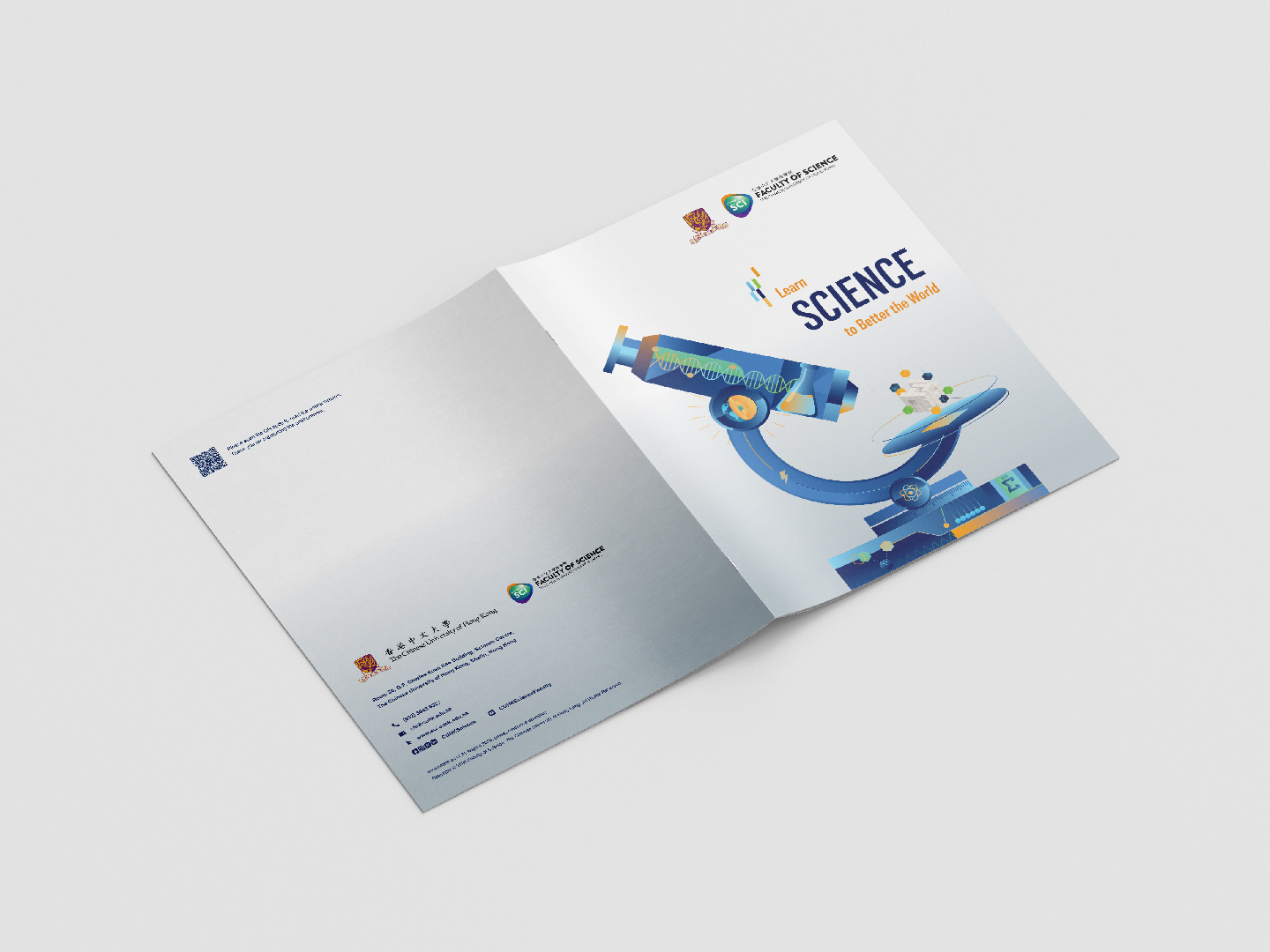 We created a cover design that combines various courses in the faculty into one illustration of a microscope, representing the quest to discover and learn in science and at CUHK. The geometric illustration and icon style also represent a detailed, scientific approach. The colour palette comes directly from the faculty’s own palette while the layout and symbols throughout the booklet are inspired by the famous CUHK building façade and windows.