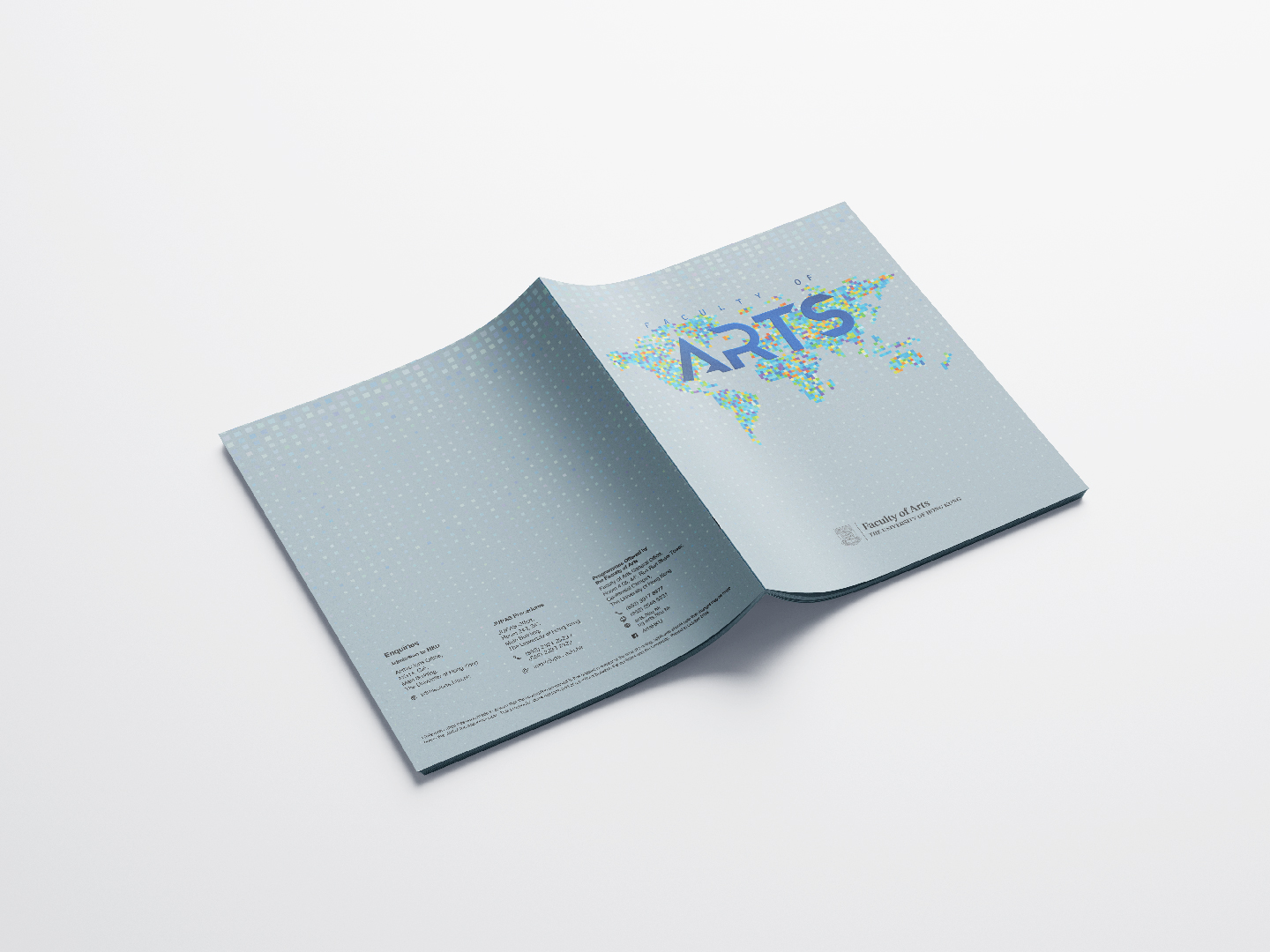 Design for The University of Hong Kong’s Faculty of Arts Programme Brochure 2025-26. The brochure features a digital pixel design, colour-coded sections, and custom printing for improved navigation and presentation.