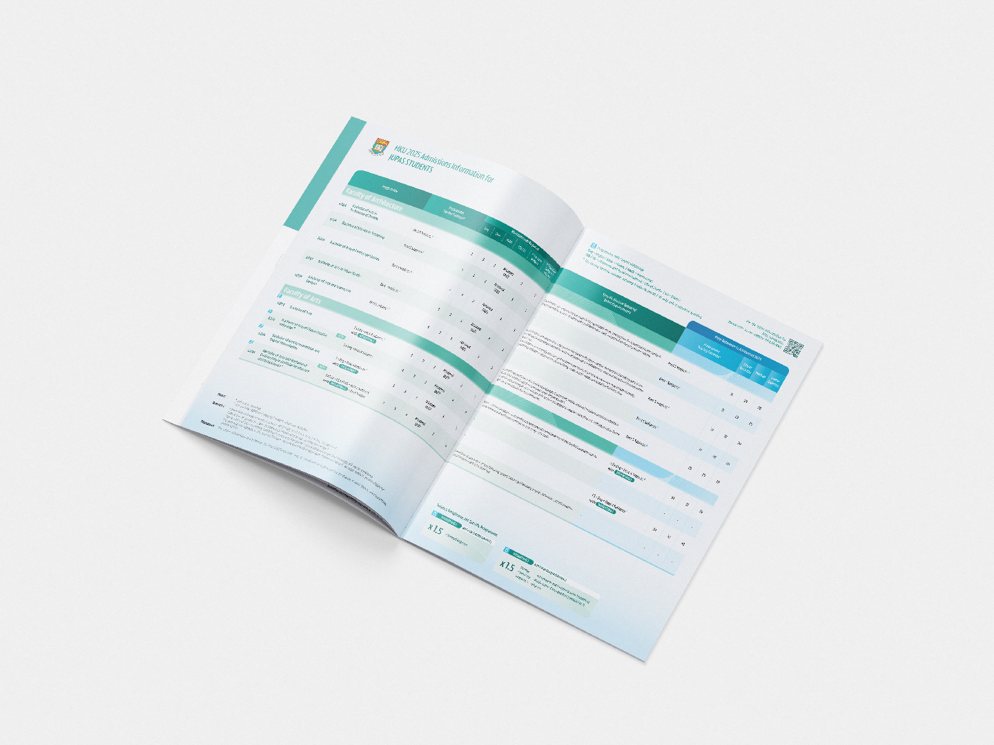Design for The University of Hong Kong’s International and JUPAS admissions booklet 2025. Both booklets follow the same design language, focusing on clarity and negative space to give potential students the most clear way to understand the information.