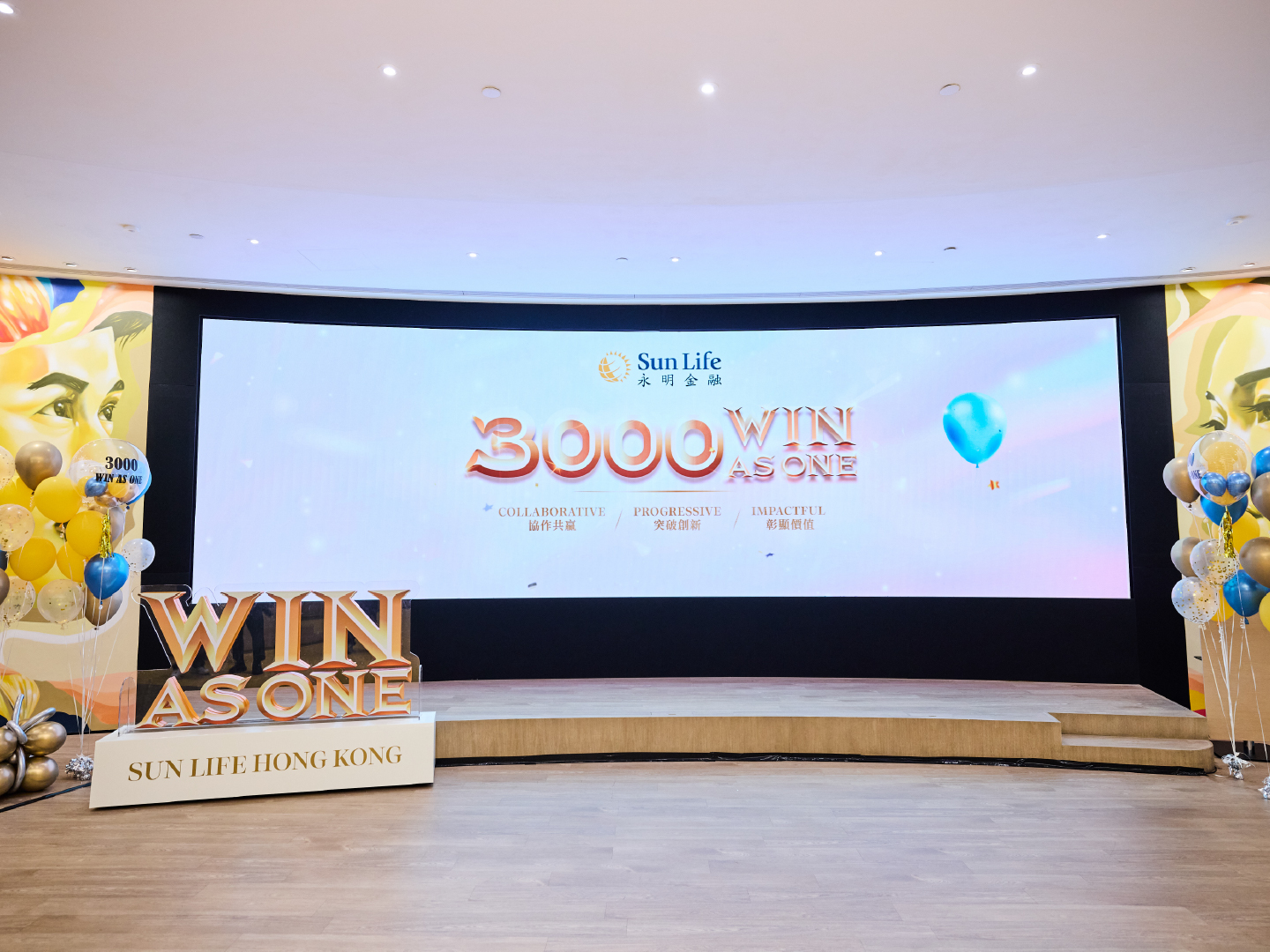The Sun Life 3000 Win As One event celebrated the milestone of reaching 3,000 team members, marking significant growth and collective effort. We handled all key visual design, creating a cohesive visual identity that reflected the theme of achievement and celebration. This included designing event branding, banners, videos and promotional material.